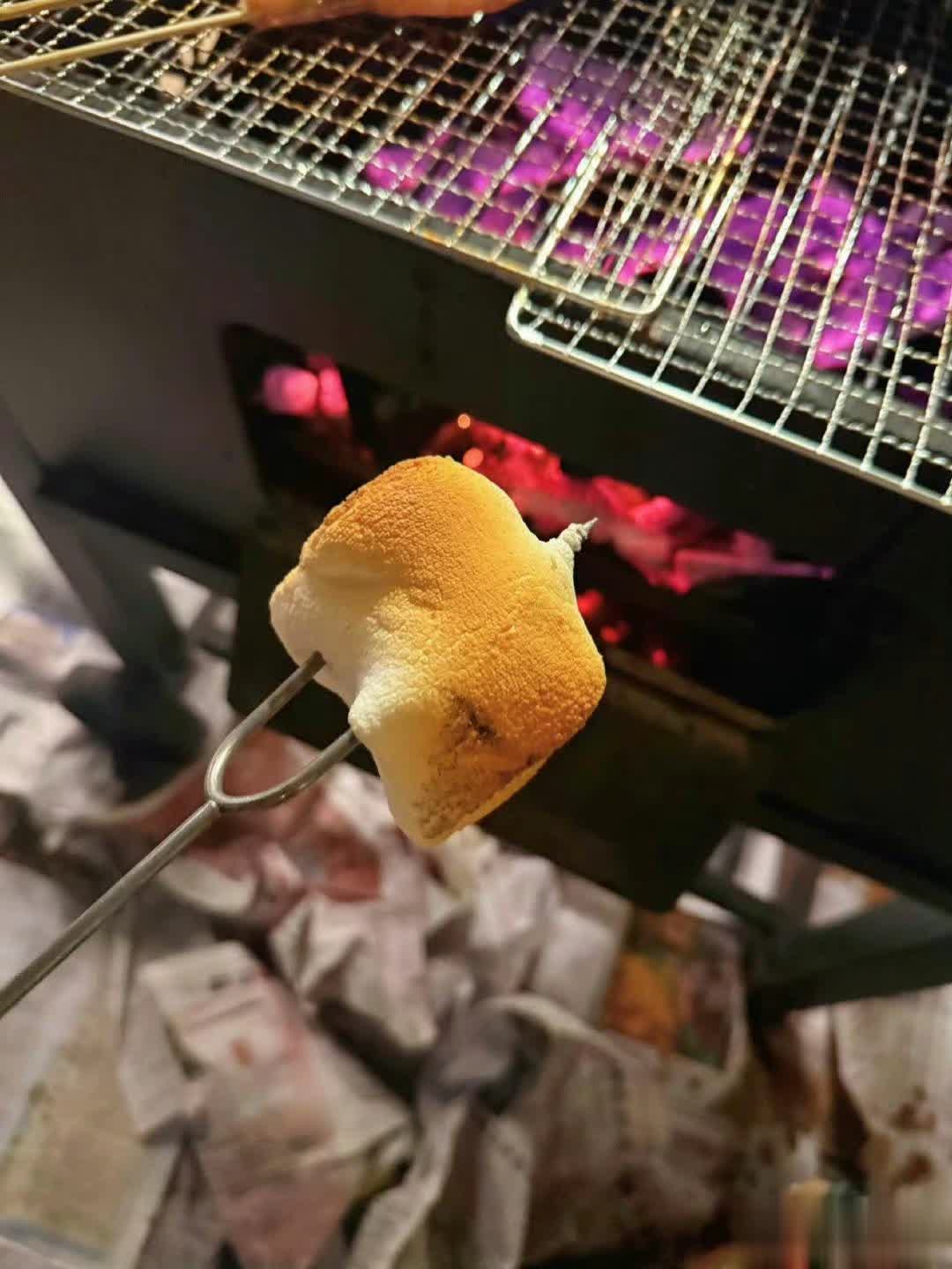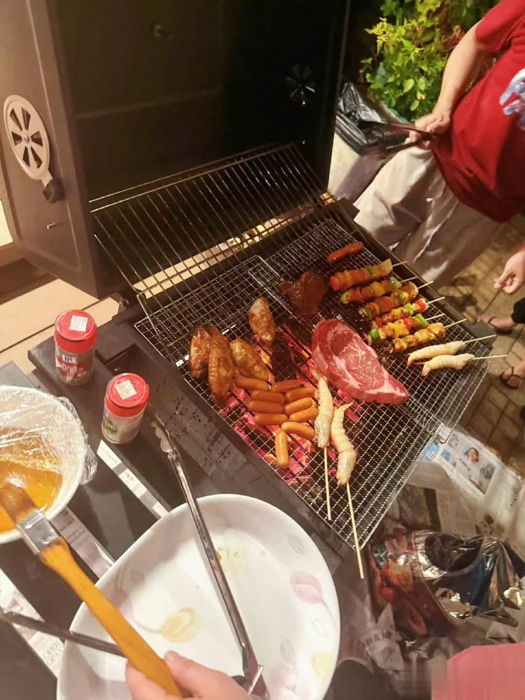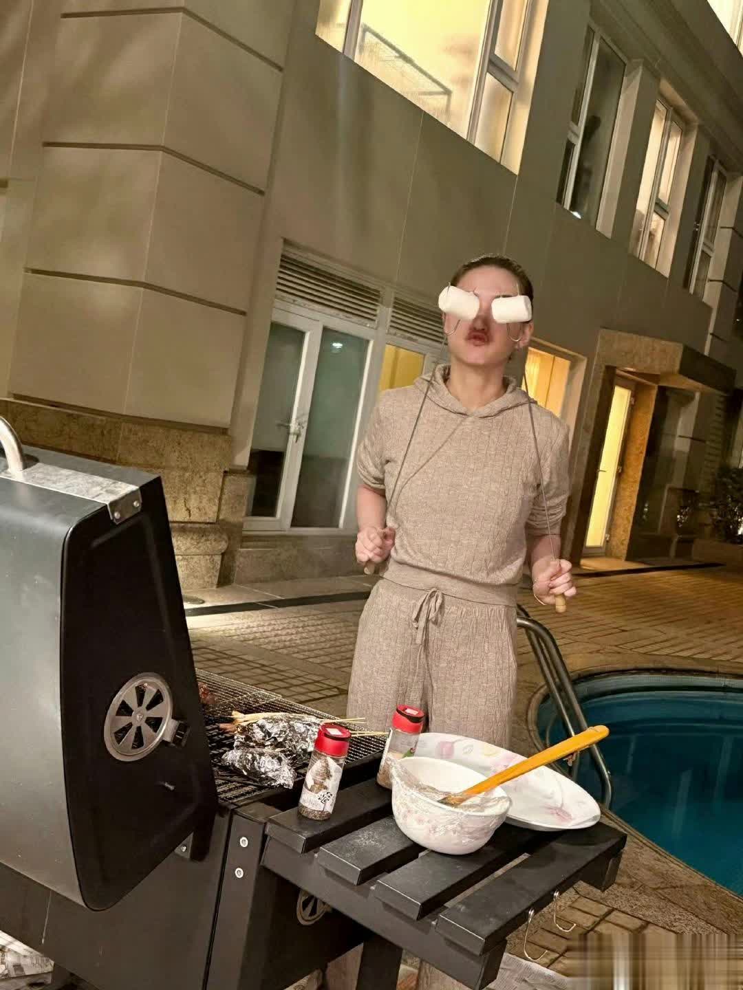 何超莲的必备活动就是吃烤棉花糖和吃月饼,她晒出了自己吃的五仁月饼,这个月饼看着倒是蛮接地气的。因为想吃烤棉花糖,他们就在自己的院子里弄起了BBQ,准备了好多好吃的。