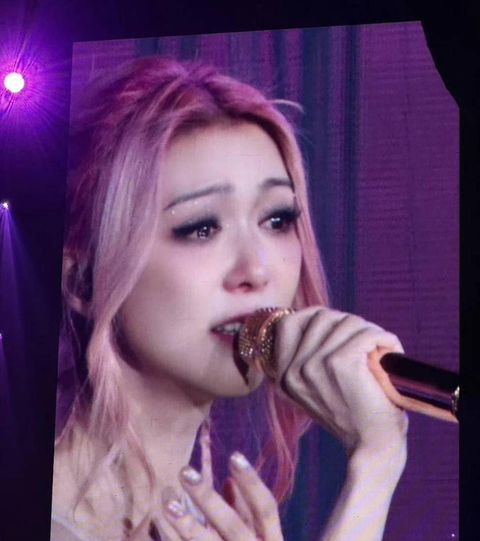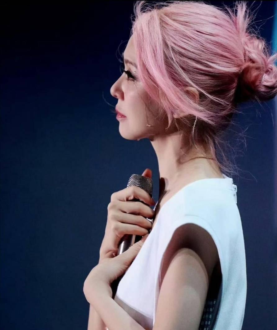 今天看到薛凯琪一组现场图。粉头发盘起来,穿个白上衣,拿着话筒侧脸唱歌。忽然就哭了。好多网友说被她感动到。